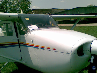 Astazi nu am mai zburat. De dimineata, la pornirea avionului s-a constatat ca la testul magnetourilor unul dintre ele facea figuri si s-a horatat sistarea zborului pana la remediere. Astazi mecanicii autorizati Cessna cu care are scoala contract au venit la avion si il repara. Speram ca maine vom zbura.